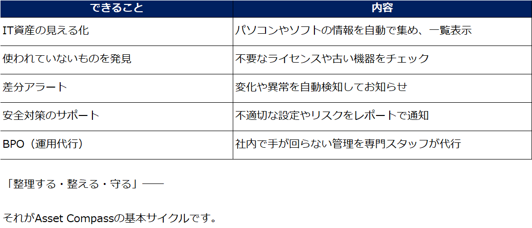 Asset Compassは、会社のITを「点検・整える」ツールです