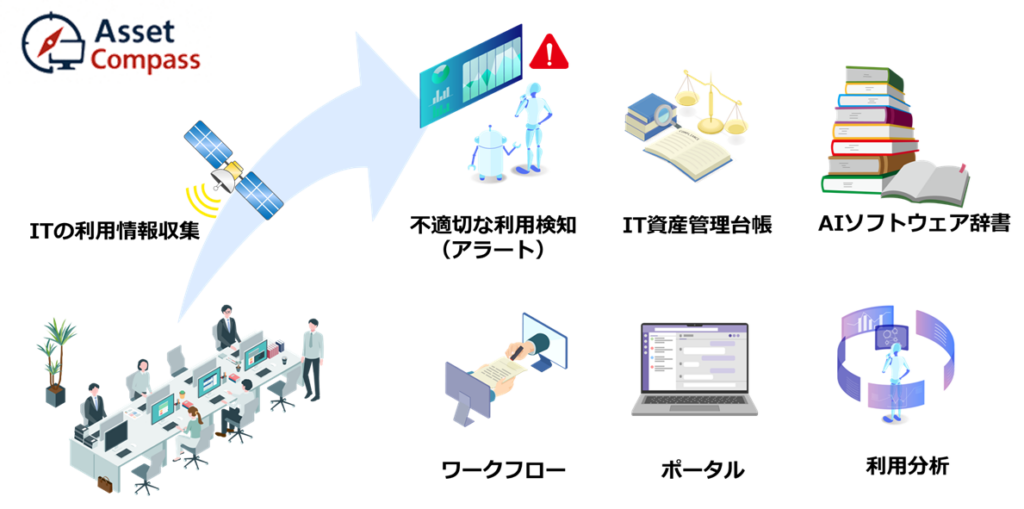 Asset Compassは、会社のパソコンやソフトの状態を整理・点検して、